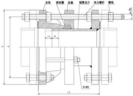 2.該產(chǎn)品采用金屬鑄造或焊接組成,松套部位選用梯形橡膠密封圈,在壓蓋和螺栓的作用下,利用橡膠壓縮彈性變形原理,迫使密封圈變形于接頭本體與伸縮管外壁之間進行靜密封。